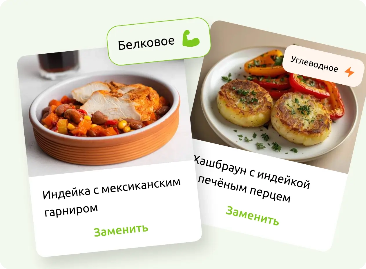 - Выбирайте из 15+ рационов тот, который подойдет вам